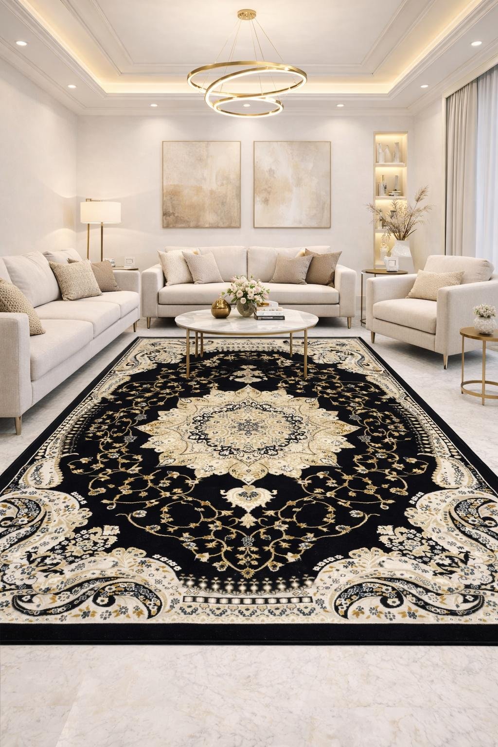 8′ x 10′Ideal for larger living rooms and dining rooms, with all furniture legs fitting on the rug.